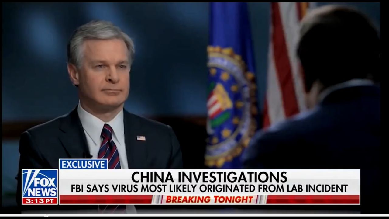 BREAKING: FBI Director Christopher Wray said that the origin of COVID was likely the result of a laboratory leak in China