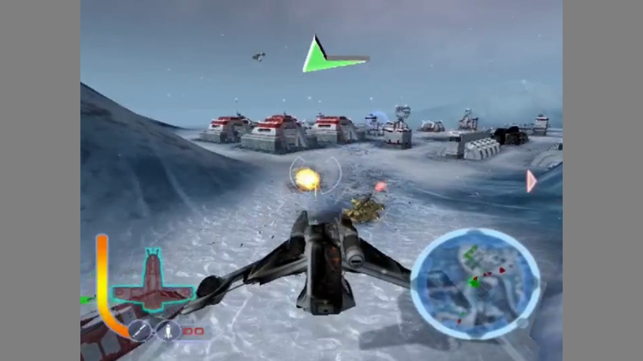 The game can be played either from a first-person or third-person perspective. The game is divided into missions which again has various objectives. Between objectives, the game often switches gameplay, similar to Rebel Assault. You might change your vehicle or continue on foot. A control various airborne or ground-based vehicles, weapons and other features wil vary, of course. When you're on foot, you can use your lightsaber (either by slashing, or by throwing it), and use a force attack which takes some time to recharge after use.
