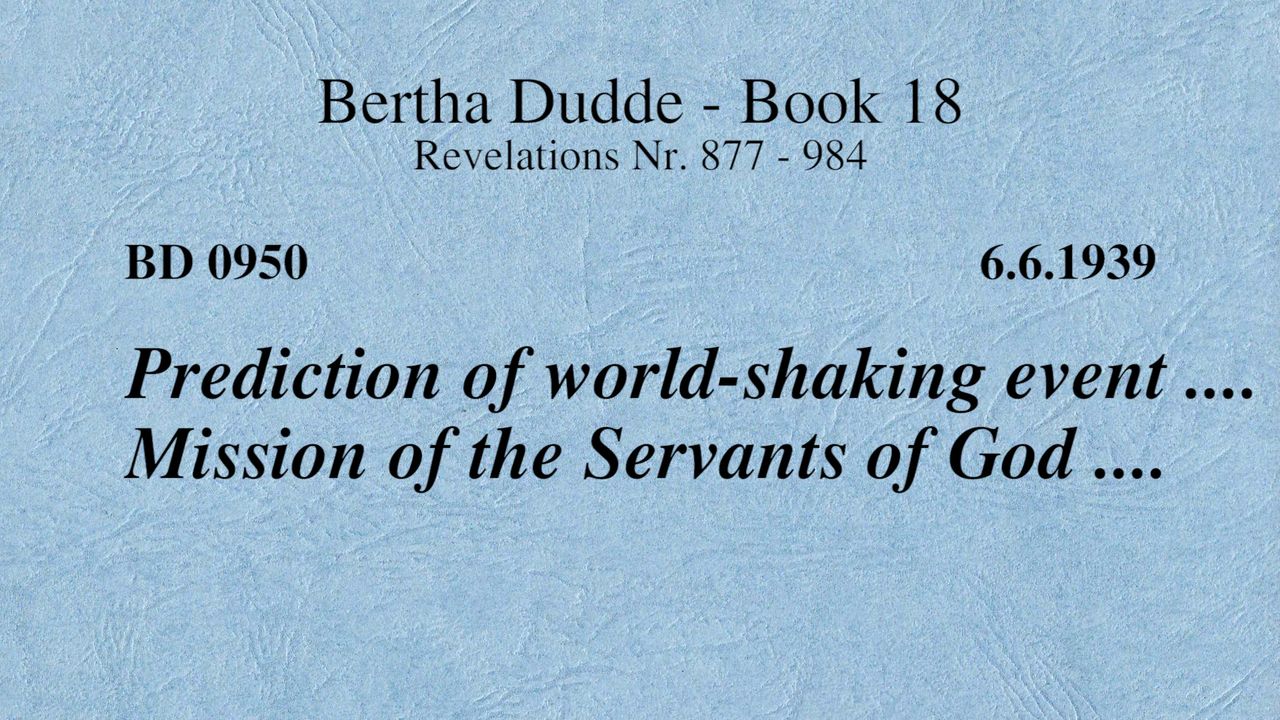 BD 0950 - PREDICTION OF WORLD-SHAKING EVENT .... MISSION OF THE SERVANTS OF GOD ....