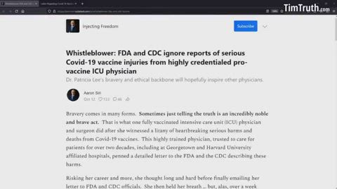 TIM TRUTH REPORTS: DR. PATRICIA LEE'S LETTER "SERIOUS HARM BEING CAUSED BY THE COVID-19 VACCINES"