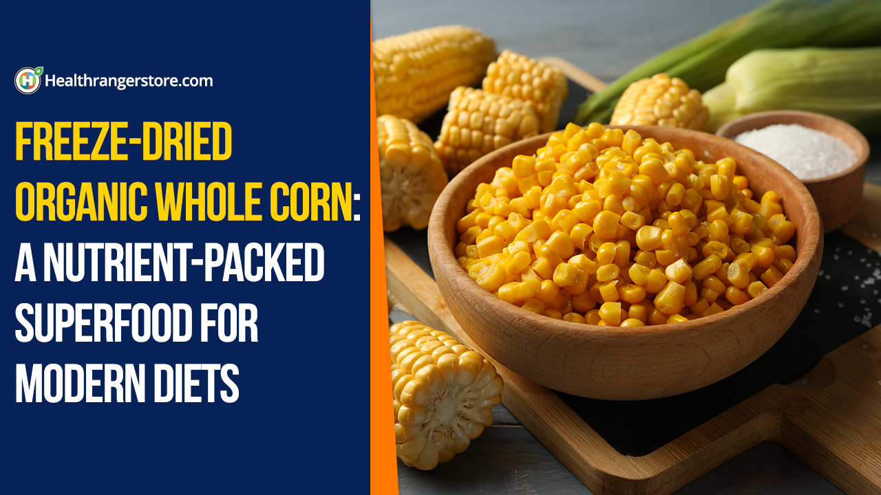A versatile and convenient ingredient that can be added to a wide variety of dishes or eaten alone as a snack, Health Ranger Select Organic Freeze-Dried Whole Corn is a great source of dietary fiber, protein, potassium and other nutrients. It is carefully freeze-dried to preserve the original taste, texture and nutrient content of fresh whole corn without using harmful synthetic additives, preservatives or fillers.
