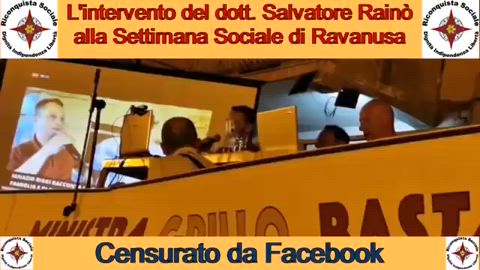 La diretta streaming ufficiale è stata prontamente censurata da Facebook, non si comprende bene con quale scusa. Fortunosamente anche Riconquista Sociale ha fatto una diretta streaming. Proponiamo quindi lo stralcio relativo all'intervento del dott. Rainò.