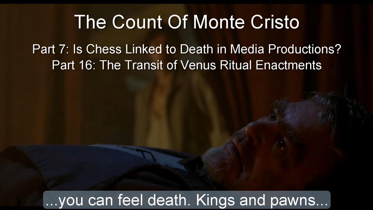 Featuring a film from 2002 that was inspired by a literary classic, The Count Of Monte Cristo, by Alexandre Dumas. I'm going to play several clips that illustrate a connection between chess and death and chess and life, so this will be the 7th installment in the video series called, "Is Chess Linked to Death in Media Productions?" Because there's a scene with a transit of Venus ritual, or perhaps even two, this will also be the 16th installment in the video series called, "The Transit of Venus Ritual Enactments." Heads up - plot spoilers.