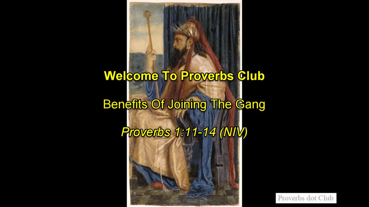 Benefits Of Joining The Gang - Proverbs 1:11-14 (NIV)