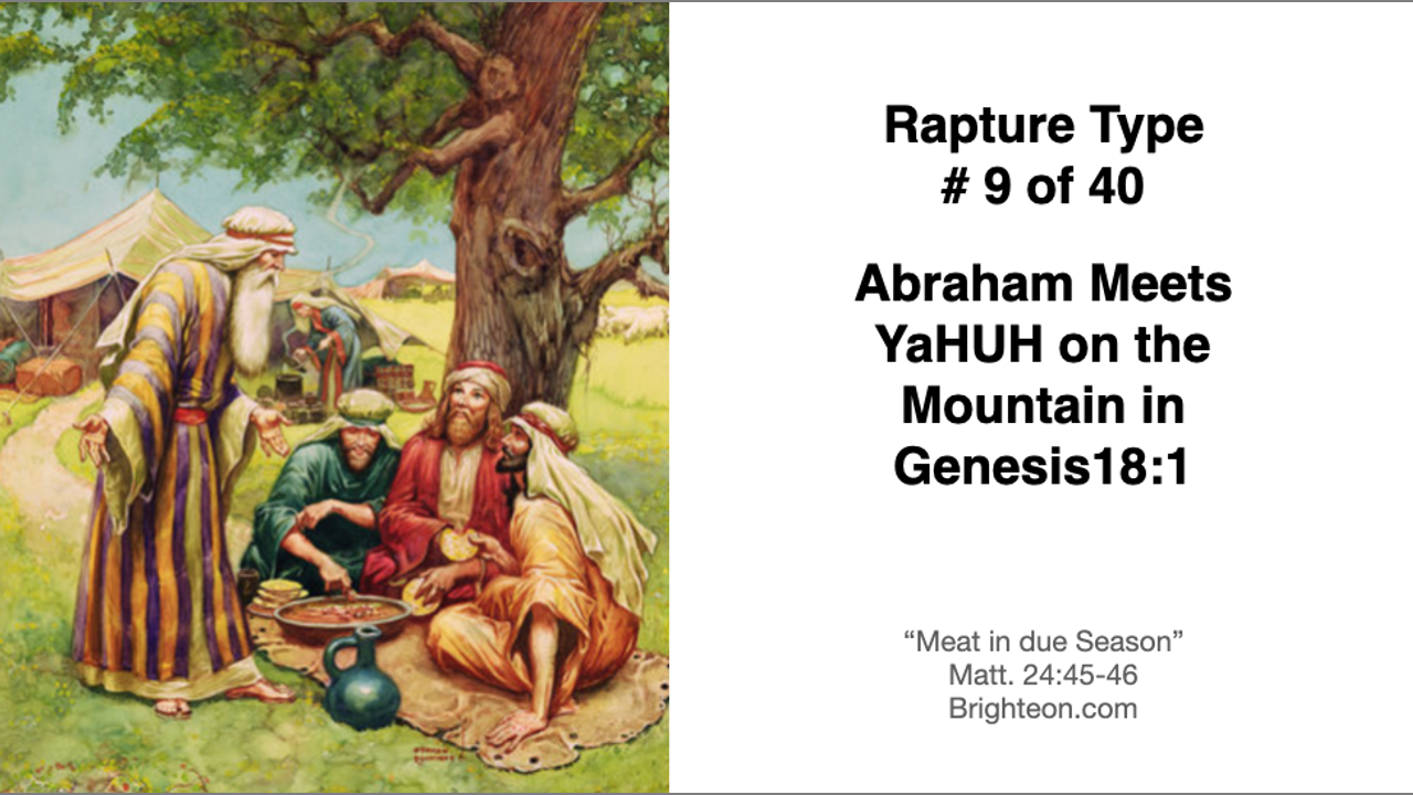 Another type of the rapture is when Abraham meets YaHUH in Genesis 18:1. The number 18 (3x6 or 2x9) is associated with the reassertion throughout scripture.