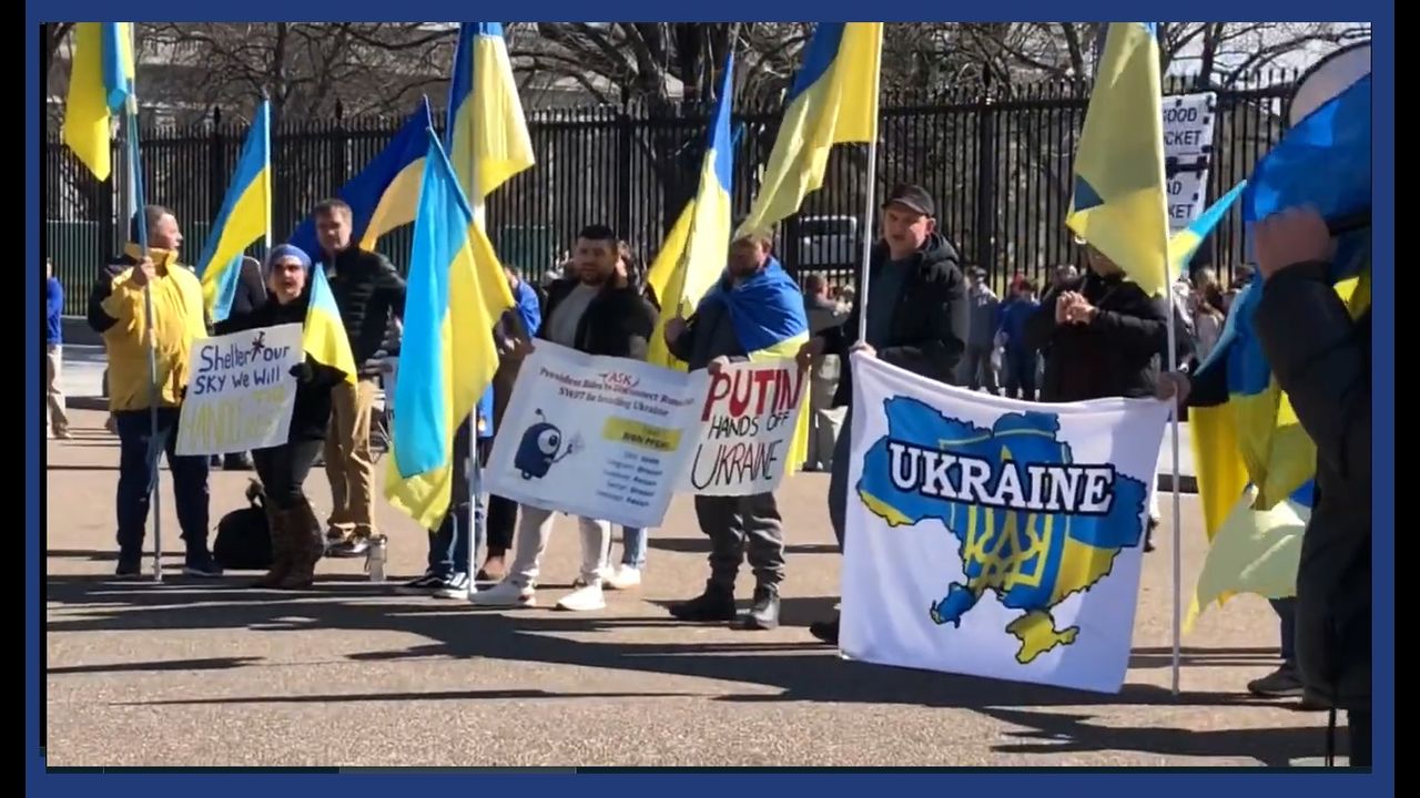 Ukrainian protesters surrounded the White House demanding Joe Biden stop the war in Ukraine.