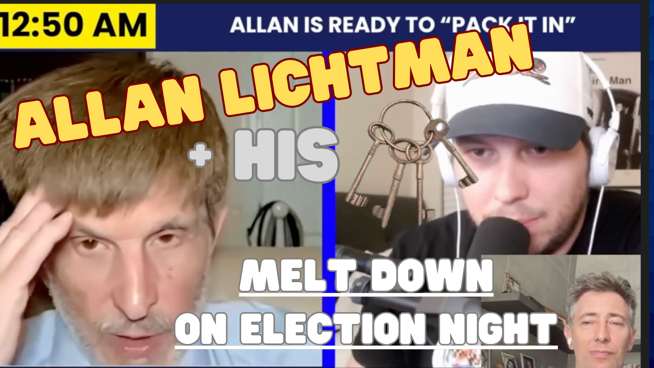 Allan Lichtman and his son are supremely confident on election night, given Allan's vaunted keys to the White House, as he confidently predicts Kamala Harris to win. Yet as the night progresses, he gets more and more disturbed, as him and his keys melt down. It was Yager who told him to take a nice class of shut up juice, to which Allen replied that it was "blasphemy" as though he was a god.