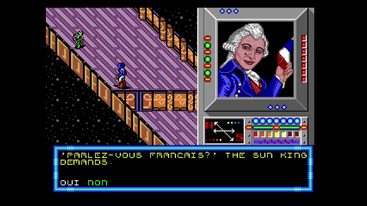 Unlike the computer versions, which use a first-person view to display your surroundings, both movement and combat are shown in an isometric view. The only exception is a battle between spaceships. While you are not in combat, your party is display with a single avatar.