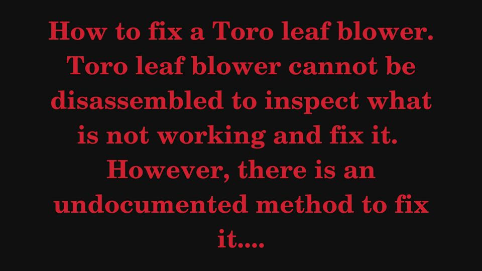 How To Fix A Toro Leaf Blower