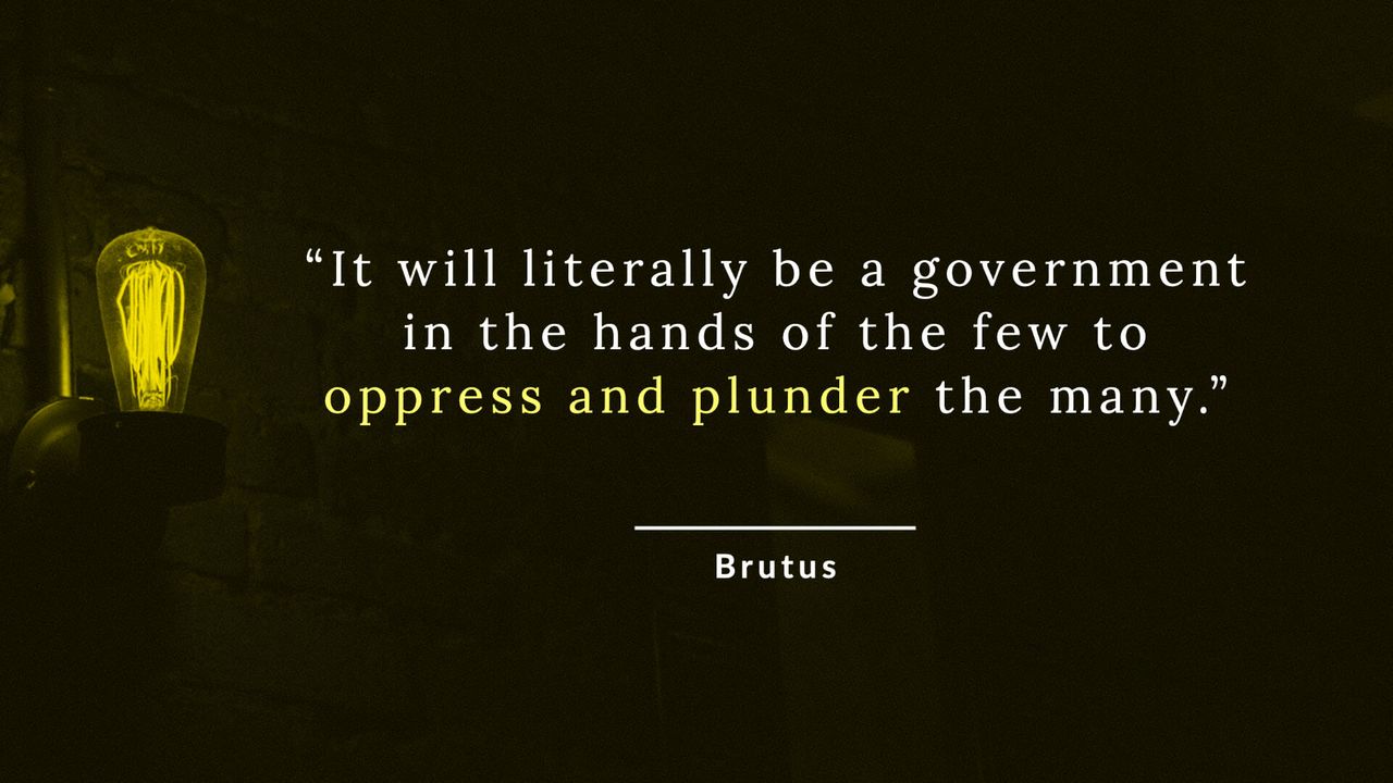In his series of essays, Brutus repeatedly warned about the dangers of centralized power, predicting that the proposed government would end up exercising “infinite” and “incomprehensible” power.