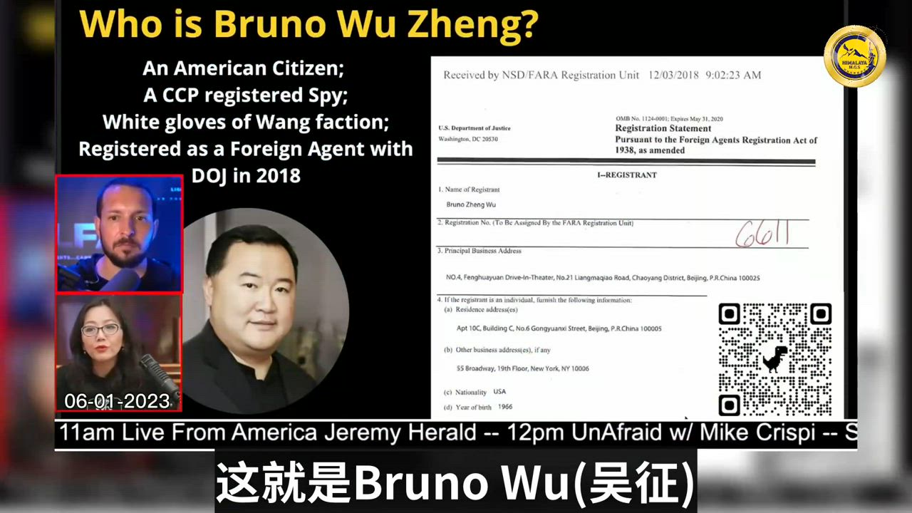 Bruno Wu is a registered spy for CCP, and he gives a death threat to Miles on behalf of the CCP kleptocrats. Wu said if you do not cancel the VOA interview, I will make sure you die and without a burial place. He also warned Miles Guo that he will come after his son as well.