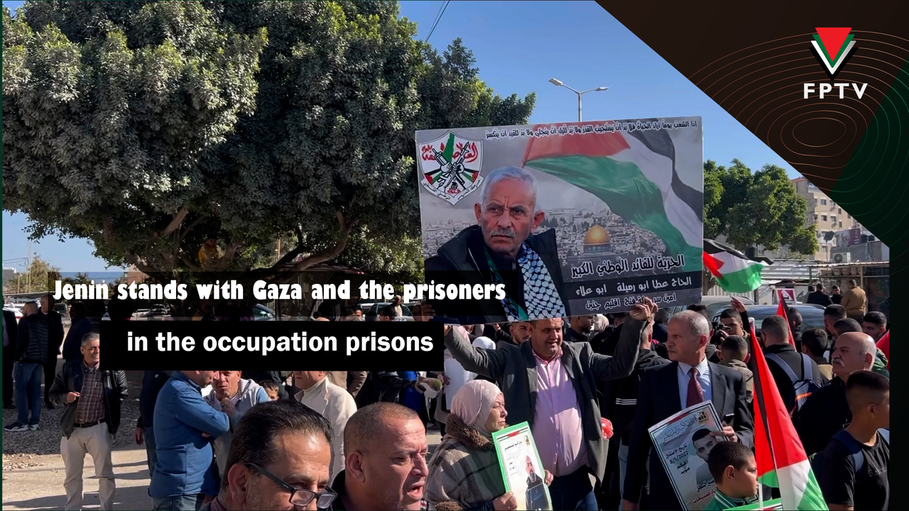 The people of Jenin, at the invitation of the prisoners’ institutions, factions and activities, organized a stand in support of Gaza and its people, despite the ongoing aggression against it, and in support of the prisoners in the occupation prisons, in light of the oppressive measures taken by the occupation prison administration against them.