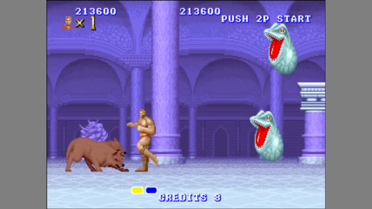 The game has auto-scrolling from left to right. You can jump, perform a high jump, punch and kick. You go through the level and need to power up yourself by killing a certain enemy, a flashing two-headed beast. Killing the beast will release an orb. If you collect it, your muscles become larger and your kicks and punches do more damage. Upon collecting the third orb, you transform into a beast with special attacks. In each level, you will transform into a different beast. When you reach the end of the level, Neff will await you. If you have transformed into a beast, he will transform into a monster and fight you. If you haven't transformed yet, he will leave and the level will loop. This continues until to you reach Neff in beast form.