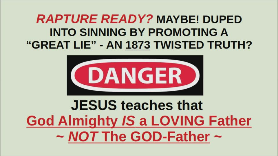 RAPTURE READY? DUPED? MAYBE! SINNING BY PROMOTING A “GREAT LIE” - AN 1873 TWISTED TRUTH?