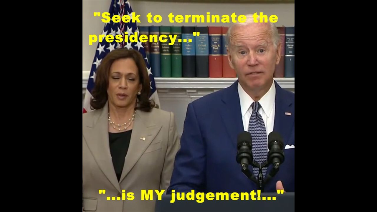 Capturing the MOMENT of harris' recognition reflex.Text: "Seek to terminate the presidency... is MY judgement!"