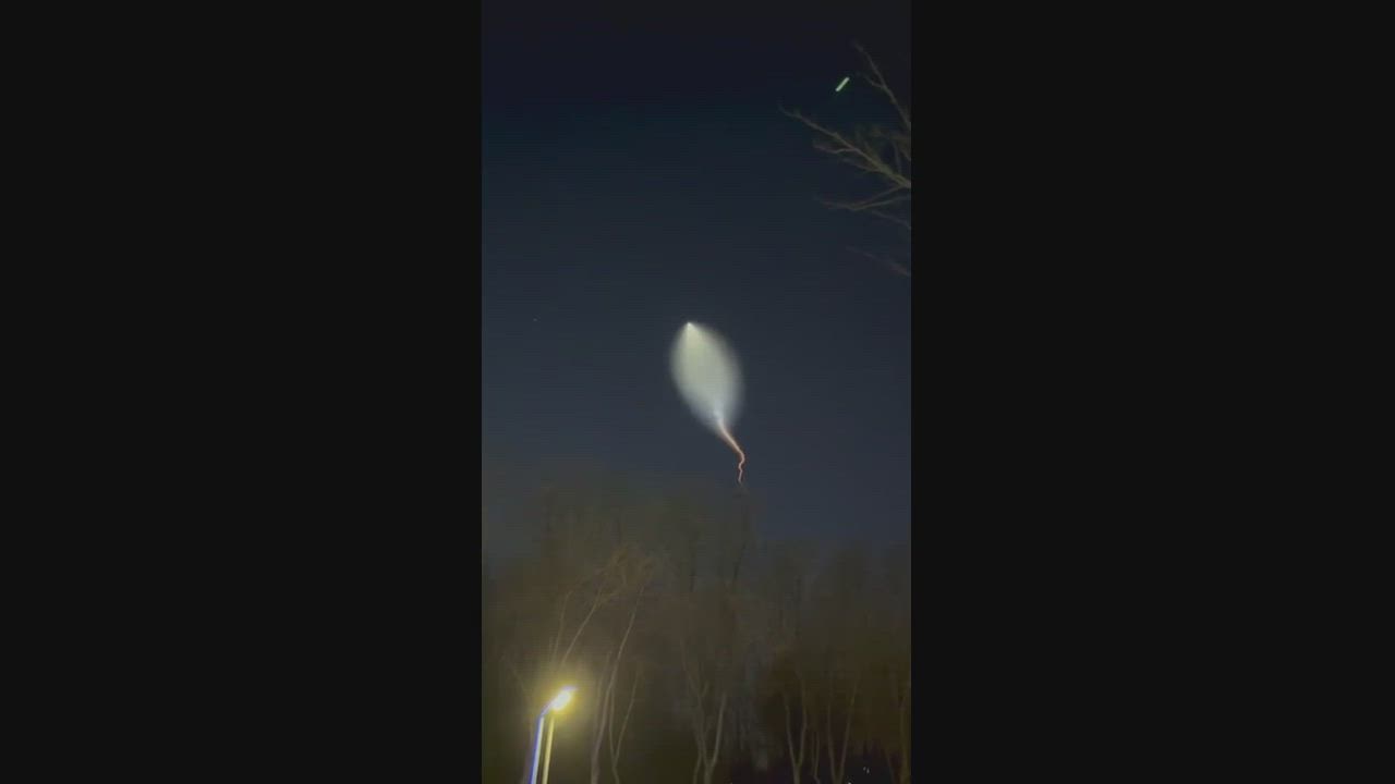 "A twilight phenomenon is produced when exhaust particles from missile or rocket propellant left in the vapor trail of a launch vehicle condense, freeze, and then expand in the less dense upper atmosphere. The exhaust plume, which is suspended against a dark sky, is then illuminated by reflective high-altitude sunlight through dispersion, which produces a spectacular, colorful effect when seen at ground level."