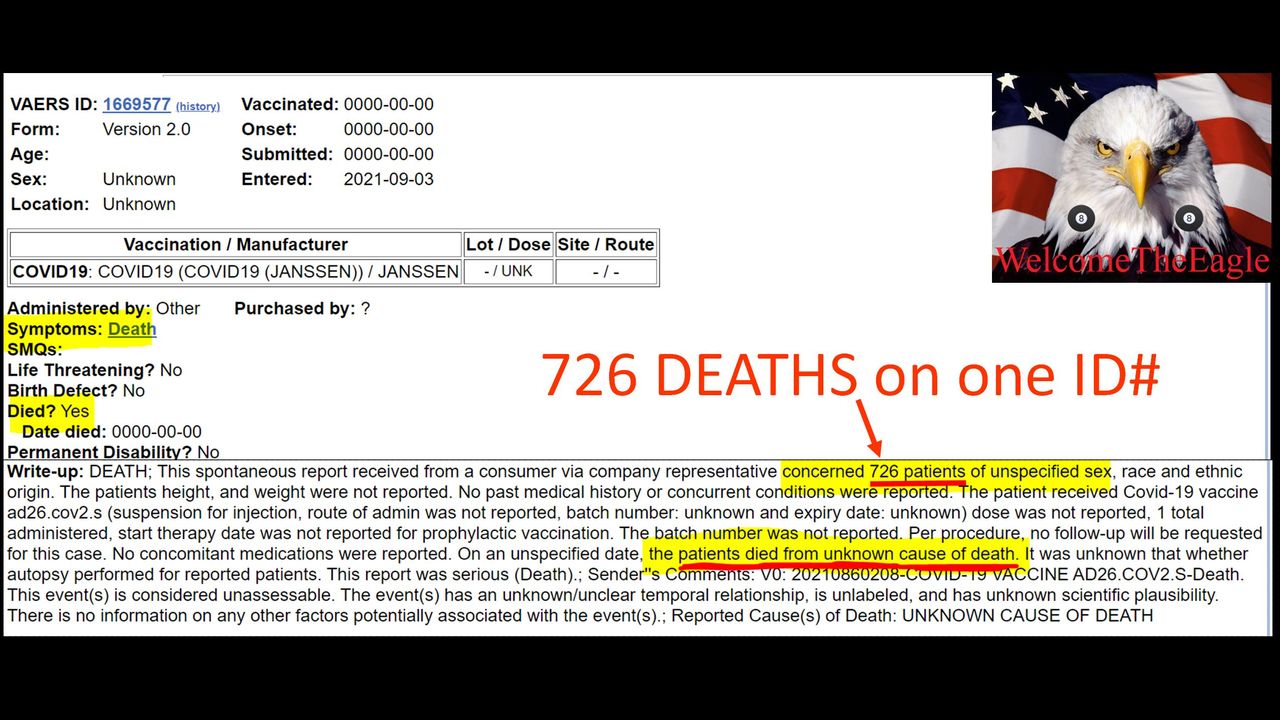 VAERS BOMBSHELL! They just bundled 726 DEATHS all into one ID#!!!!!