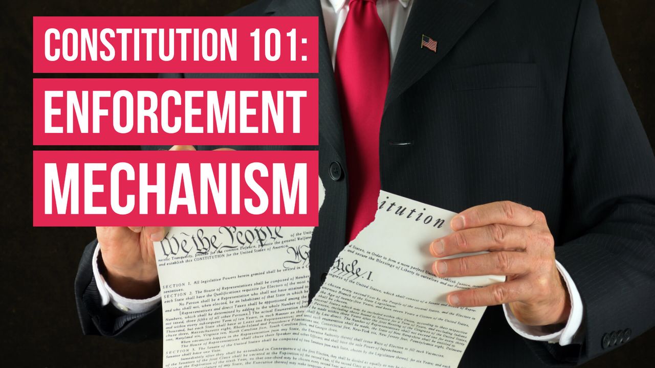 Yes, there actually is an enforcement mechanism to keep the federal government within the bounds of the constitution. But it has nothing to do with trying to convince the feds to limit their own power.