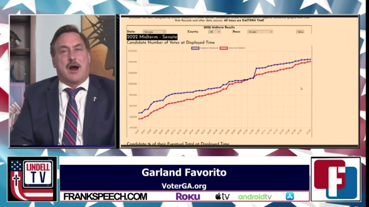 Mike Lindell and his group of researchers show massive spikes up and down in votes counts coming from many different races in the 2022 midterm elections. The spikes always favor the Democrat candidate. This evidence cannot be ignored.