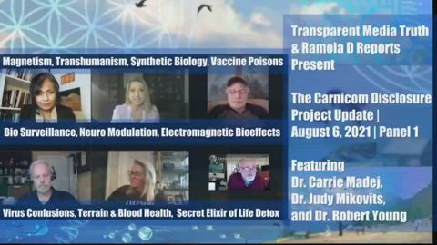 Quote: "Panel 1 – Carnicom Disclosure Project Update 2021, TMT & RDR | Dr. Madej, Dr. Mikovits, Dr. Young | Multi-Pronged Attack on Human Health. First in a planned series titled The Carnicom Disclosure Update 2021, Panel 1 features a powerful and wide-ranging conversation with physicians and molecular biologists Dr. Carrie Madej, Dr. Robert Young, and Dr. Judy Mikovits, grounded in the work of environmental scientist Clifford Carnicom to identify the nature of aerosol and in-body Morgellon's filaments across 20 years of research and inquiry, and addressing the related implications of today's findings of Nano Graphene Oxide in the COVID vaccines, flu vaccines, saline, chem trails; Magnetism among the vaccinated; Neuromodulation and biosurveillance; Poisons from fermented cell cultures, metals, viruses, fungi & other sources in all vaccines; CDC-acknowedged non-isolation of viruses, both SARS-COV-2 and all others; Germ Theory vs Terrain Theory; Great importance of Blood Health; EMF Bioeffects on Blood & Health; Secret elixir of life from the Essenes: green grass/plant juice; Need to Detox; and Great need to stand up for our children today and engage in Non-Compliance to all misled, scientifically-unfounded and tyrannical “guidance” or “mandates” from Pharma-run and deceiving governments pushing toxic poison, genome-modifying mRNA and nanotech-laden vaccines on us. LINKS FOR MORE: Several articles and books were mentioned during this conversation and shared with the panel, graphics from some included in the video. All scientific papers sent on by Dr. Judy Mikovits during the panel and referenced here are uploaded to everydayconcerned.net (and can also be found online). Links to free articles mentioned by Dr. Robert Young are posted below. Genetically targeted control of Neuronal system: https://everydayconcerned.net/wp-content/uploads/2021/08/Genetically-targeted-control-of-Neuronal-system.pdf Engineering a Genetically Encoded Magnetic Protein Crystal https://everydayconcerned.net/wp-content/uploads/2021/08/li_et_al_nanoletters_2019-magnetic-protein.pdf New Quality-Control Investigations on Vaccines: Micro-and Nanocontamination/Dr. Gatti and Dr. Montanari/2017 https://everydayconcerned.net/wp-content/uploads/2021/08/EXH-6-Gatti-IJVV-04-00072.pdf Divalent cation signaling in immune cells https://everydayconcerned.net/wp-content/uploads/2021/08/Divalent-cation-signaling-in-immune-cells-Lenardo-copy.pdf TRPA1 channels: molecular sentinels of cellular stress and tissue damage https://everydayconcerned.net/wp-content/uploads/2021/08/TRPA1-channels-molecular-sentinels-of-cellular-stress-and-tissue-damage.pdf Who Had Their Finger on the Magic of Life - Antoine Bechamp or Louis Pasteur?/Robert O Young https://medcraveonline.com/IJVV/who-had-their-finger-on-the-magic-of-life---antoine-bechamp-or-louis-pasteur.html Second Thoughts Concerning Viruses, Vaccines and the HIV/AIDS Hypothesis - Part 3HIV/AIDS and the Monomorphic Disease Mode /Robert O Young/ https://medcraveonline.com/IJVV/IJVV-02-00035.pdf The Effects of Electromagnetic Frequencies on the Blood and Biological Terrain/Robert O. Young: https://www.drrobertyoung.com/post/the-effects-electromagnet-frequencies-on-the-blood-and-biological-terrain The Blood and its Third Anatomical Element by Antoine Bechamp, 1912/ Book online in full at http://whale.to/v/bechamp_b1.html DR. ROBERT YOUNG: www.drrobertyoung.com DR. JUDY MIKOVITS: https://drjudyamikovits.com/ DR. CARRIE MADEJ https://carriemadej.com/ CLIFFORD CARNICOM'S RESEARCH ARCHIVES WEBSITE: www.carnicominstitute.org CARNICOM DISCLOSURE PROJECT 2020: www.transparentmediatruth.com/carnicom TRANSPARENT MEDIA TRUTH: www.transparentmediatruth.com At Youtube. RAMOLA D REPORTS: www.everydayconcerned.net At Bitchute, Brighteon, Lbry, Odysee, Live 528"