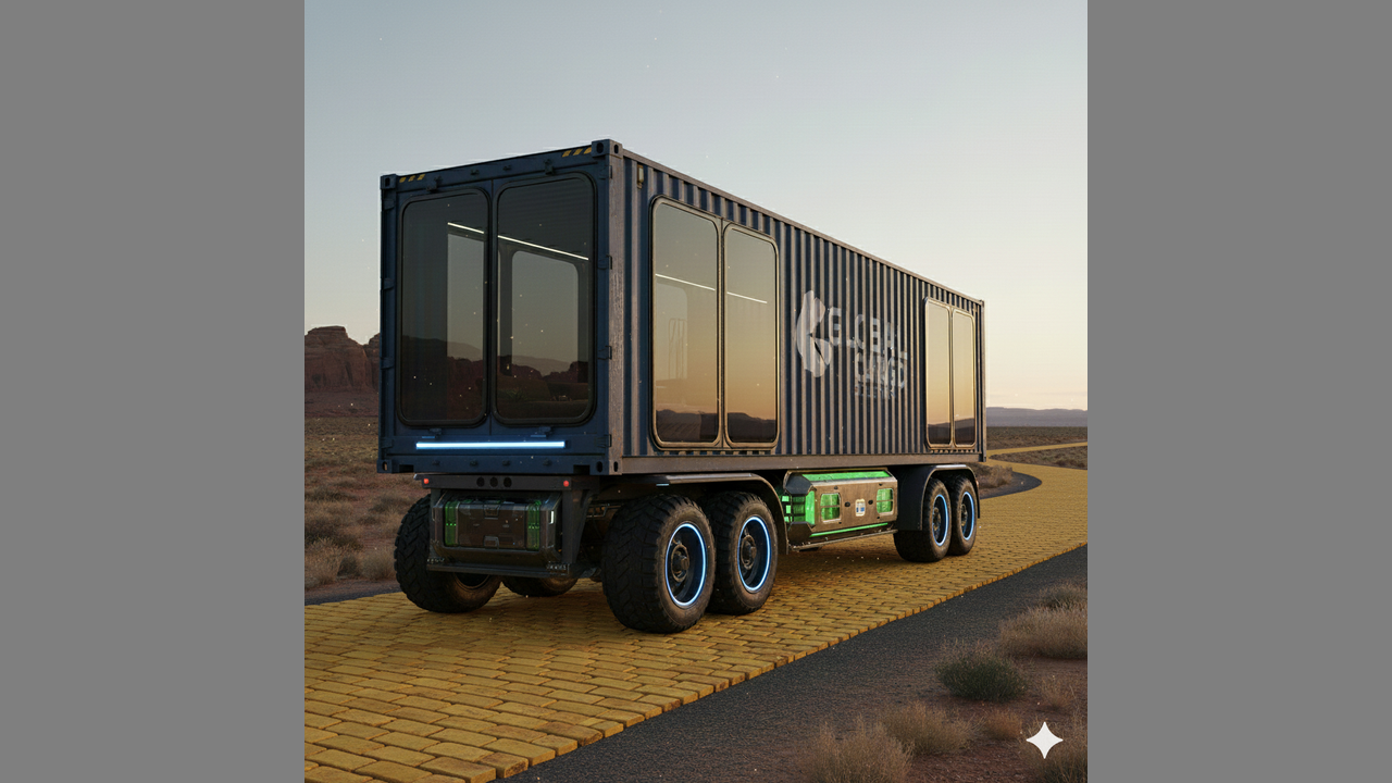 Verse 1 (Driving, electric synth arpeggios begin, building a sense of motion) Dawn breaks orange over mesas wide, Forty feet of steel, nowhere to hide. No cab, no driver, just the road ahead, A silent promise, what the future said. This cargo train is running on its own, Carrying the world, from the dock to home. The classic box, but underneath the skin, A revolution where the journey can begin. Chorus (The beat drops, powerful and steady, with a shimmering synth melody) Oh, the Electric Bogie, humming low, Green pulse batteries, watch the power flow. Advanced Torque Vectoring, that’s the brain and steel, Steering through the tight spots, that's how it feels. Weaving through the depots, precise and clean, The most efficient freight line you have ever seen. It’s the Autonomous Drone, rolling on the blacktop heat, Quietly connecting every end to meet. Verse 2 (The music becomes slightly more intricate, focusing on the engineering) Two independent platforms, front and the back, Attached beneath the container's heavy track. A full-load pivot, zero-radius turn, Lessons in physics that the old rigs had to un-learn. Each wheel an engine, fed by the high-volt charge, Maneuvering is master, handling large. Precision steering, calculating every arc, Shining blue brake lights cutting through the dark. Chorus (Powerful and steady, building intensity) Oh, the Electric Bogie, humming low, Green pulse batteries, watch the power flow. Advanced Torque Vectoring, that’s the brain and steel, Steering through the tight spots, that's how it feels. Weaving through the depots, precise and clean, The most efficient freight line you have ever seen. It’s the Autonomous Drone, rolling on the blacktop heat, Quietly connecting every end to meet. Bridge (Tempo slows slightly, the synths become more atmospheric and futuristic) The dust cloud settles where the old trucks roared, Efficiency is now the rule adored. From port to plant, on schedule, no delay, The sensor suite is watching, lighting up the way. It’s not just moving goods, it’s a shifting of the paradigm, The silent speed of logistics, conquering space and time. It just needs the coordinate, the destination code, And this self-propelled container carries its load. Guitar/Synth Solo (A soaring, high-pitched synth solo with a tight, driving bass line that mirrors the agility of the bogie's steering.) Chorus (The final, triumphant chorus, full energy) Oh, the Electric Bogie, humming low, Green pulse batteries, watch the power flow. Advanced Torque Vectoring, that’s the brain and steel, Steering through the tight spots, that's how it feels. Weaving through the depots, precise and clean, The most efficient freight line you have ever seen. It’s the Autonomous Drone, rolling on the blacktop heat, Quietly connecting every end to meet. Outro (Music fades with the sound of the electric hum and the steady pulse of the beat) Bogie... Electric Bogie... Rolling into the future... (Beat slows down and stops with a final, echoing synth chord.)