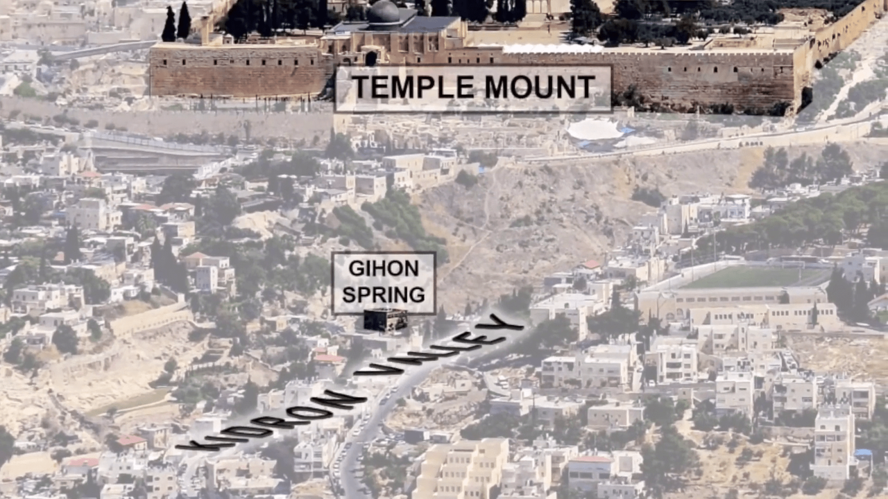 Gihon Spring in Arabic نبع ام الدرج or Fountain of the Virgin, also known as Saint Mary's Pool, is a spring in the Kidron Valley. It was the main source of water for the Pool of Siloam in Jebus and the later City of David, the original site of Jerusalem. King Solomon, the son of King David, was anointed King over Israel by this spring: “…and they mounted Solomon upon King David's mule, and led him to the Gihon.