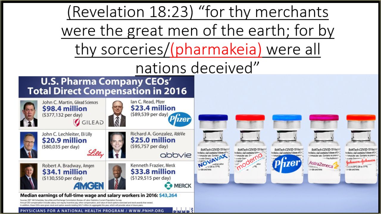 for thy merchants were the great men of the earth; for by thy sorceries/(pharmakeia) were all nations deceived.