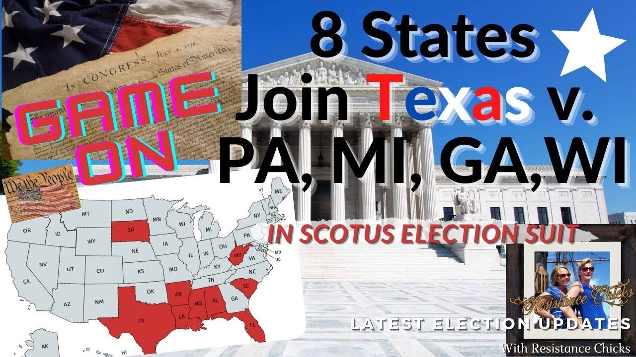 8 States JOIN TEXAS v. PA, MI, GA & WI in SCOTUS Suit! 12/8/2020