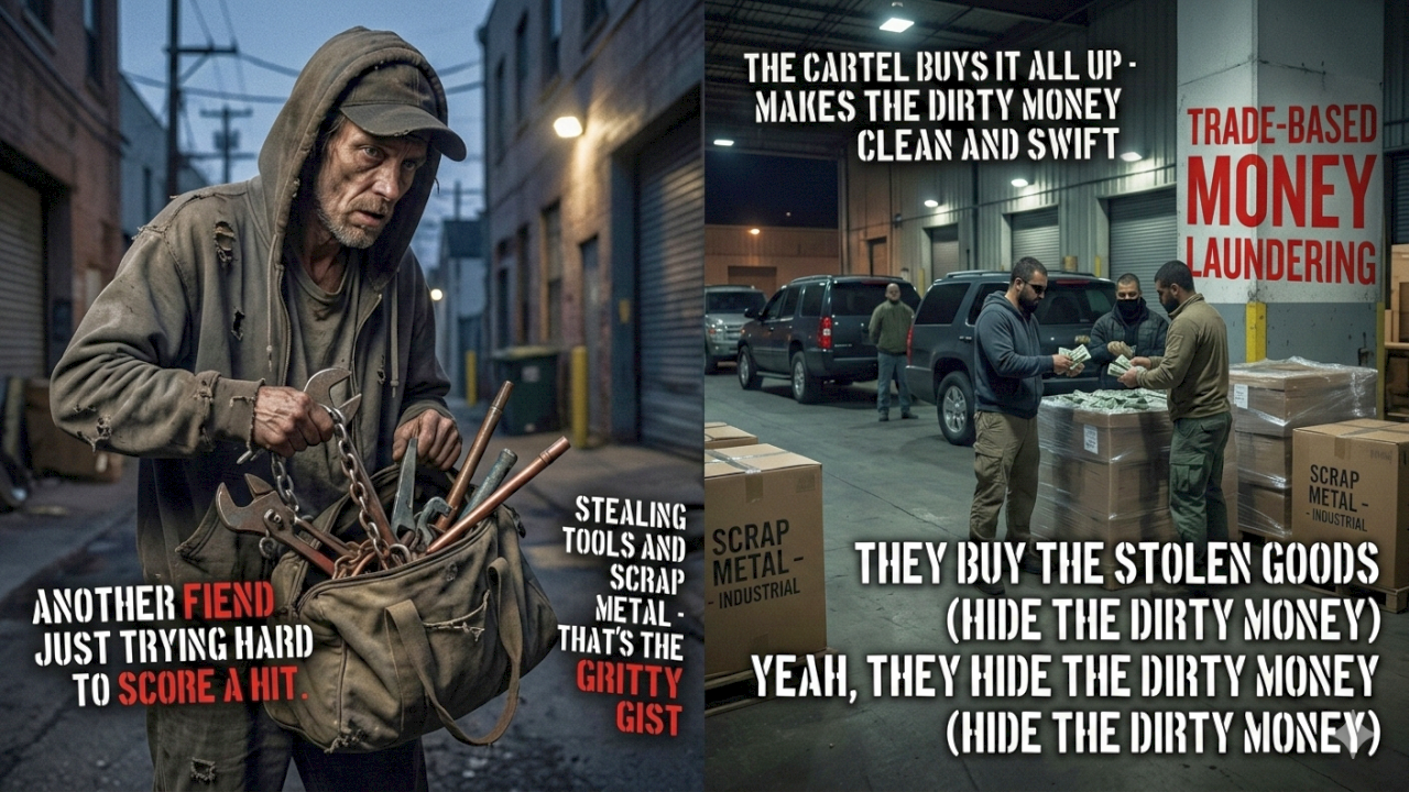 Trade-Based Money Laundering (TBML) Instead of trying to deposit millions in "dirty" cash, the Cartel uses that cash to buy massive quantities of legitimate-looking goods—or in this case, "consolidated" stolen inventory (tools, auto parts, scrap metals).Â