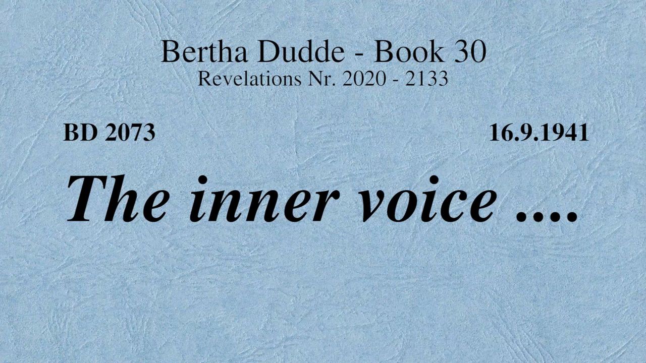 With these words the revelations of God to Bertha Dudde began on June 15, 1937, which found the conclusion on August 17, 1965 with the manifestation 9030 as a seal.