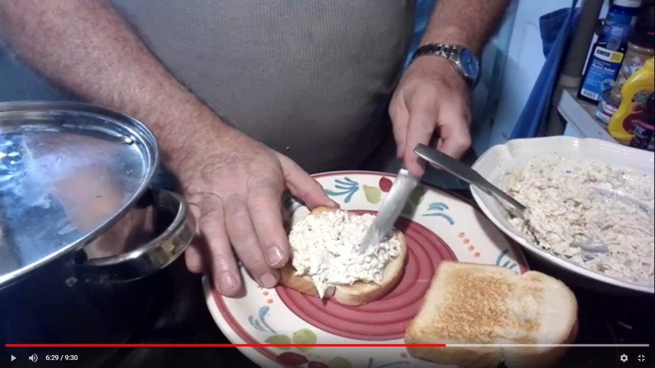 Chicken Salad Protein Sandwich and Bowl of Homemade Chicken Soup/Broth with Barley for what ails ya.