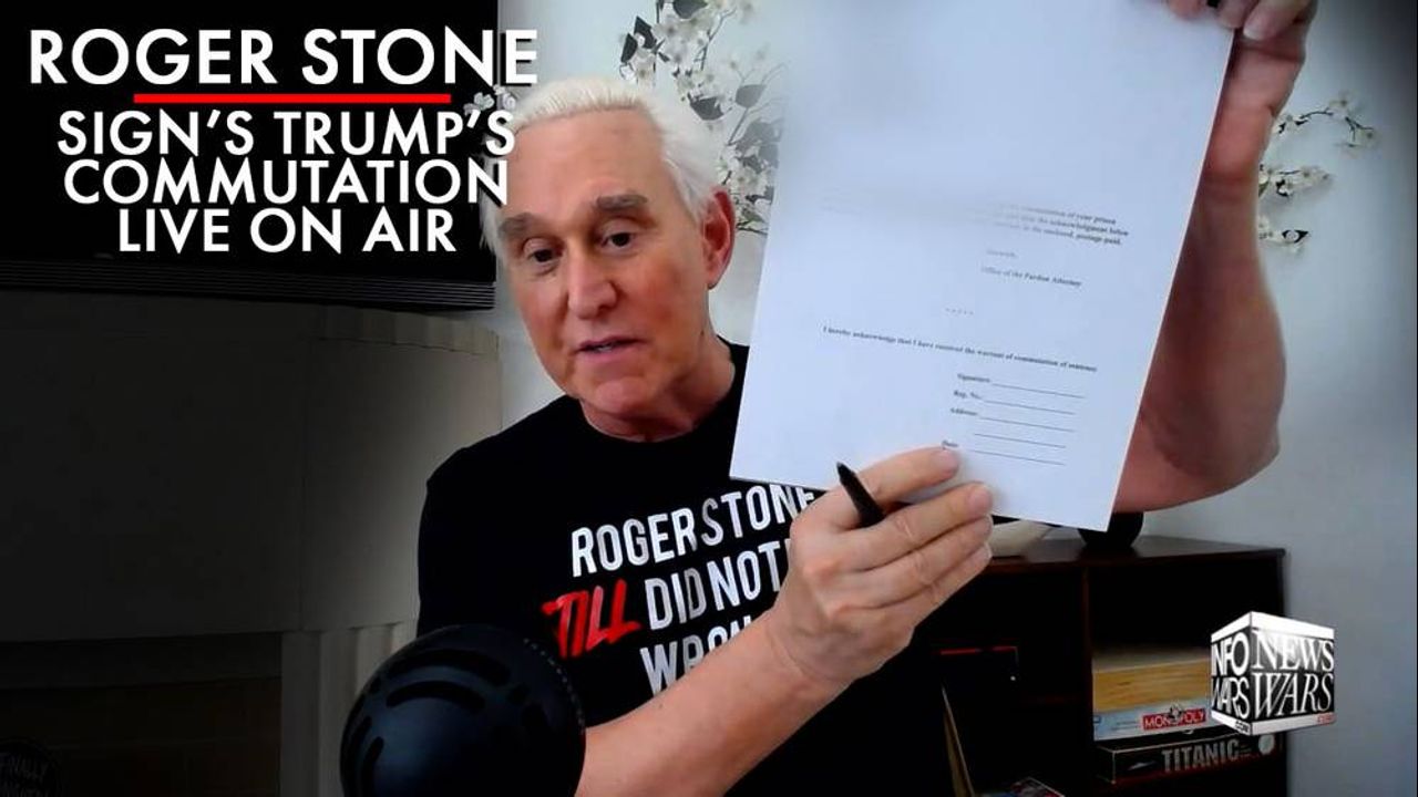 Roger Stone Signs Trump's Commutation Live On Air
