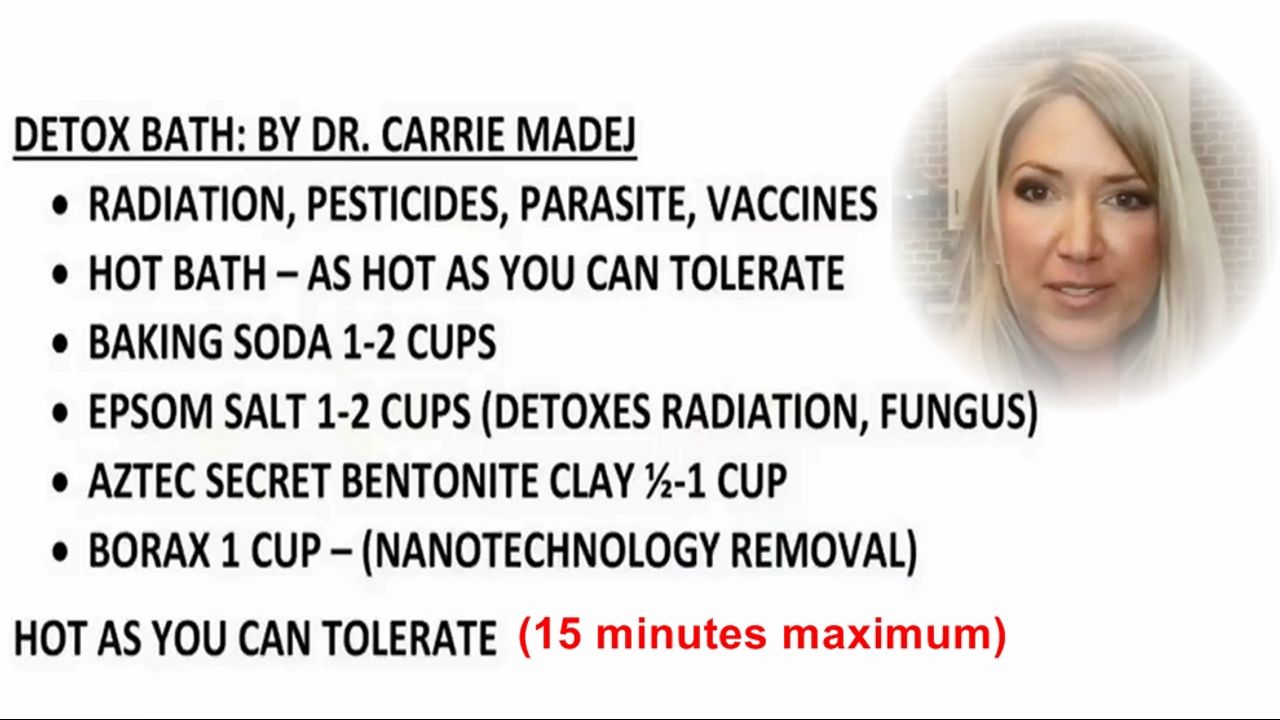 This important clip, with the detox bath recipe (baking soda, epsom salt, bentonite clay, borax), comes from a Brighteon TV episode: 5/10/2022 Steel Truth: Ann Vandersteel Ft. Dr. Carrie Madej - starting at 35:03 in that original video.