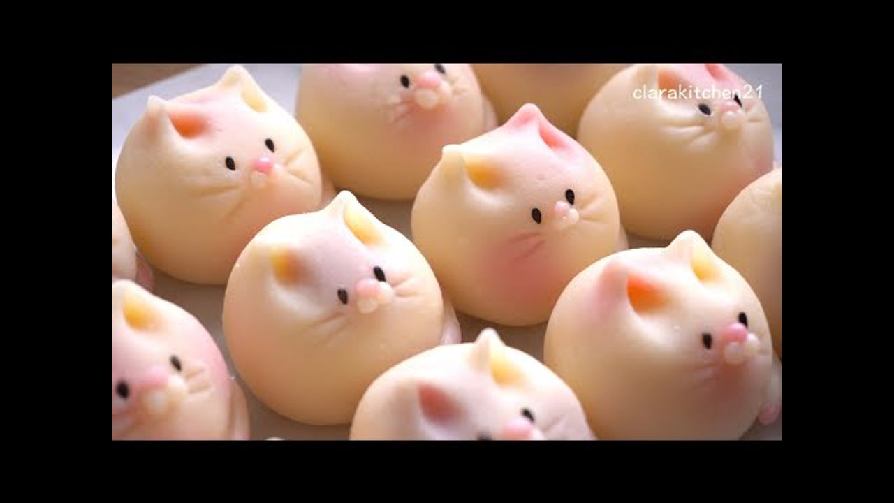 Kitty Snowskin Mooncake without Mold | 猫咪冰皮月饼 免模具 |玉米奶黄馅 Corn Flavoured Custard Filling