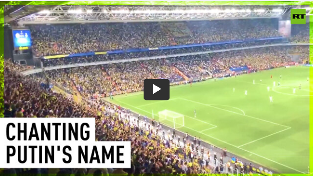 Fans of Turkish football club Fenerbahce chant Vladimir Putin's name during their Champions League qualifying match against Dynamo Kiev in Istanbul