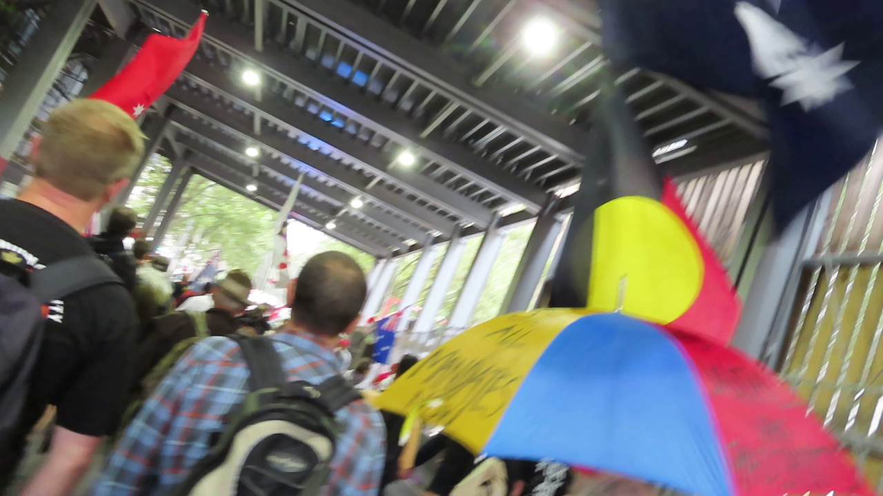 Every Melbourne protest march is different. We zig zagged our way through the city, after we started, and found our way right back at Parliament House when we finished. There were a few awkward moments when the march leaders ignored the Police lines and moved through them to keep going. The Police hurried and regathered at the next intersection. It was all done in a careful "give and take". The video clips show footage of the start, through the different streets and arriving back at Parliament House, plus relaxing in the street before having to move off to allow traffic through.