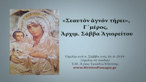 «Σεαυτόν ἁγνόν τήρει» Γ΄ ὁμιλία σέ παιδιά, 16-8-2019 Ἀρχιμ Σάββα Ἁγιορ.