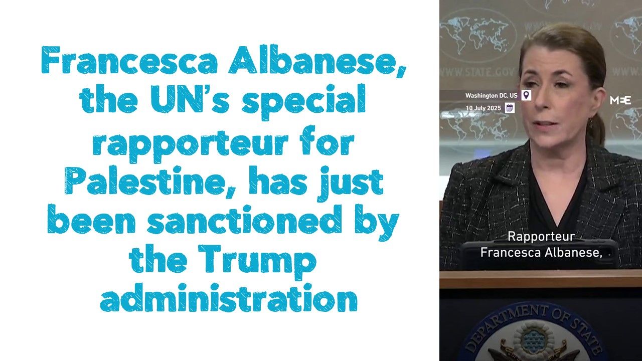 Francesca Albanese, the UN’s special rapporteur for Palestine, has just been sanctioned by the Trump administration.