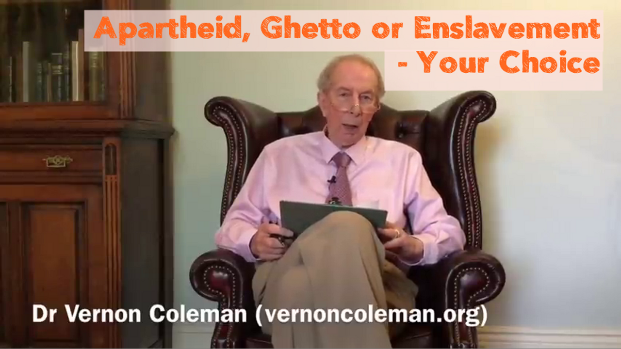 In this video, 'Apartheid, Ghetto or Enslavement', the international best-selling author and retired medical doctor, explains the choices we must make now that the future is on our doorstep. Dr Vernon Coleman's latest book 'Endgame' is available on Amazon.