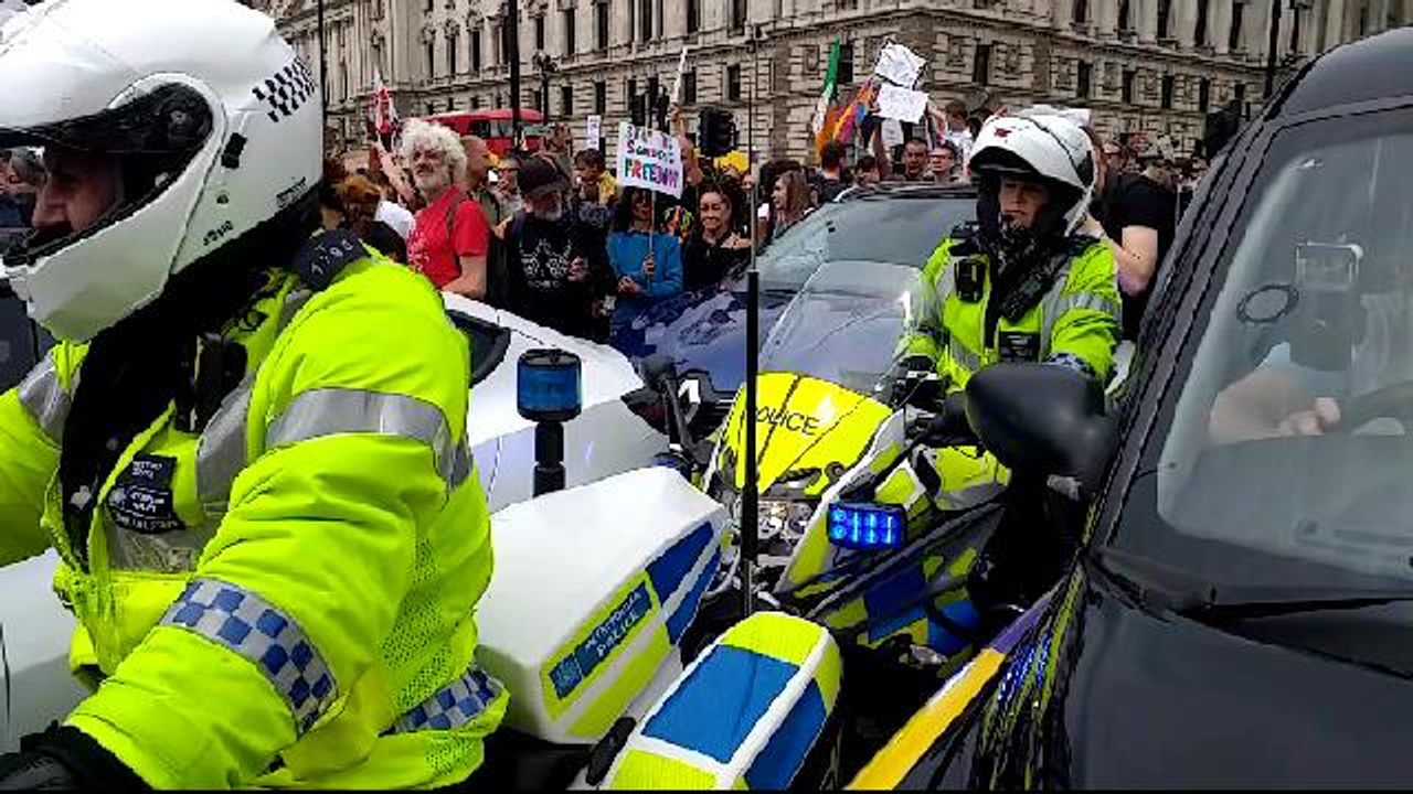 Stopping the traffic - Freedom Protest - Parliament Sq 29.05.21