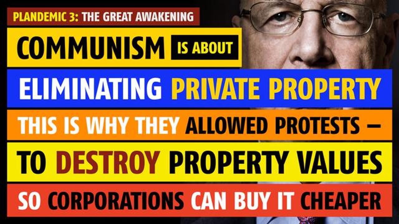 Karl Marx said the theory of communism can be summed up as the abolition of private property. This is why they allowed the protests during the COVID-19 lockdowns: so they could destroy property values so that big corporations could buy up property for pennies on the dollar. Clip from Plandemic 3: The Great Awakening (June 2023).