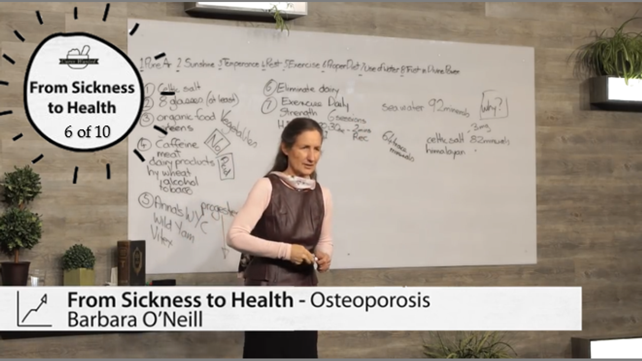 What is osteoporosis? What causes it? What can we do to strengthen our bones? There are many misconceptions about bone health, one of them being that bones are made of calcium. Bones are actually composed of a fine mineral balance. Naturopathic Doctor Barbara O’Neill reviews the 12 different minerals and discusses the 64 trace minerals needed for good bone health. Learn about the types of protein, fats, vegetables, and exercise that can contribute to improved bone density! See how the 8 Laws of Health can protect us against osteoporosis and give us the best health possible. Discover what you can do to overcome osteoporosis. Find out how to treat osteoporosis naturally.