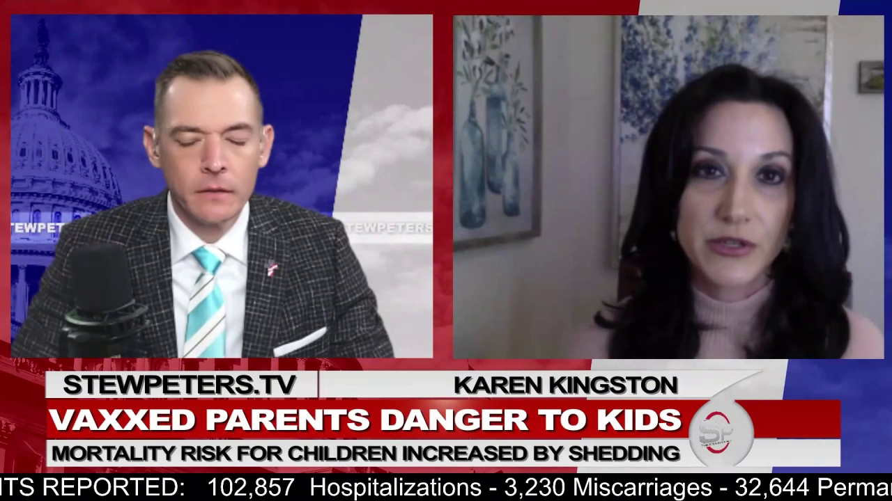 Karen Kingston joins the Stew Peters Show to expose the new evidence that vaccinated parents are increasing the mortality risk for their unvaccinated children. There's also evidence, she says, of an absurdly high false-positive rate for Covid on the PCR Tests+.