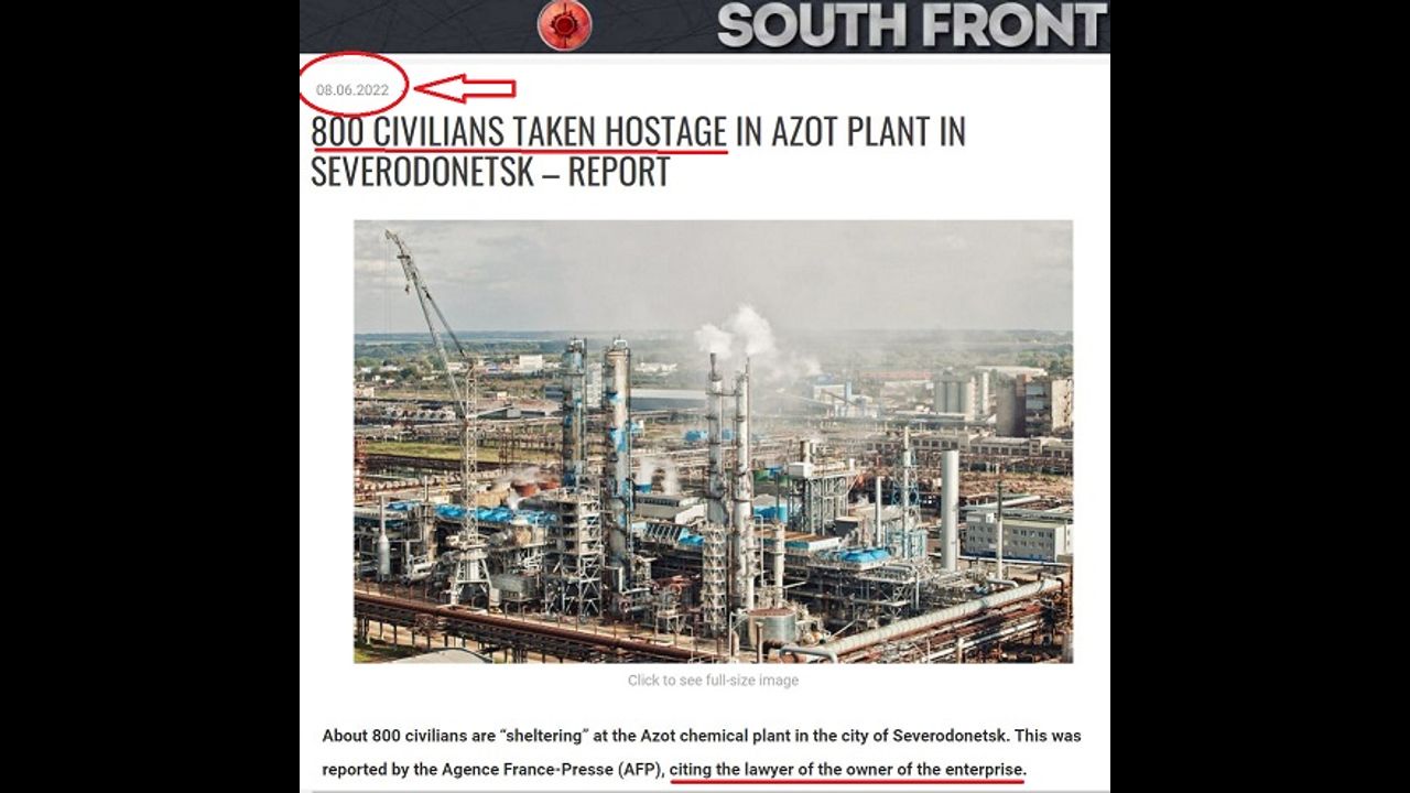 - https://southfront.org/800-civilians-taken-hostage-in-azot-plant-in-severodonetsk-report/ :