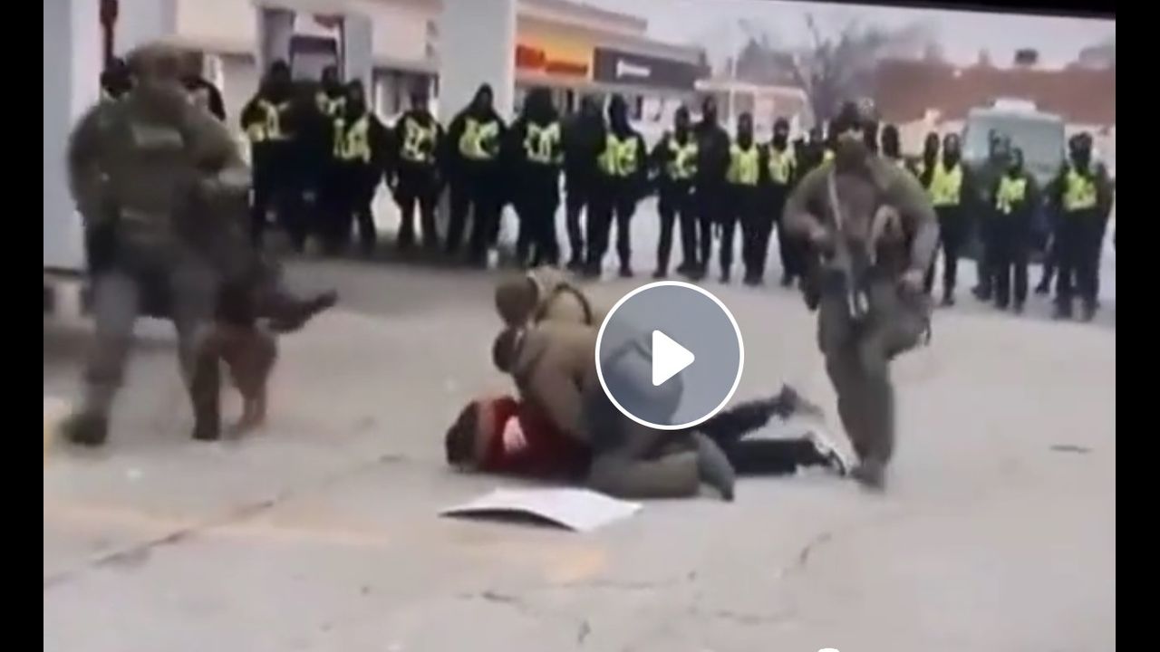 Man gets tackled by Police Thugs at the Ambassador Bridge today. Do not give up. We have ignited a fire around the world and it cannot be stopped. As soon as the cops leave, go right back. If we do not stop this tyranny now, there will never be another opportunity.