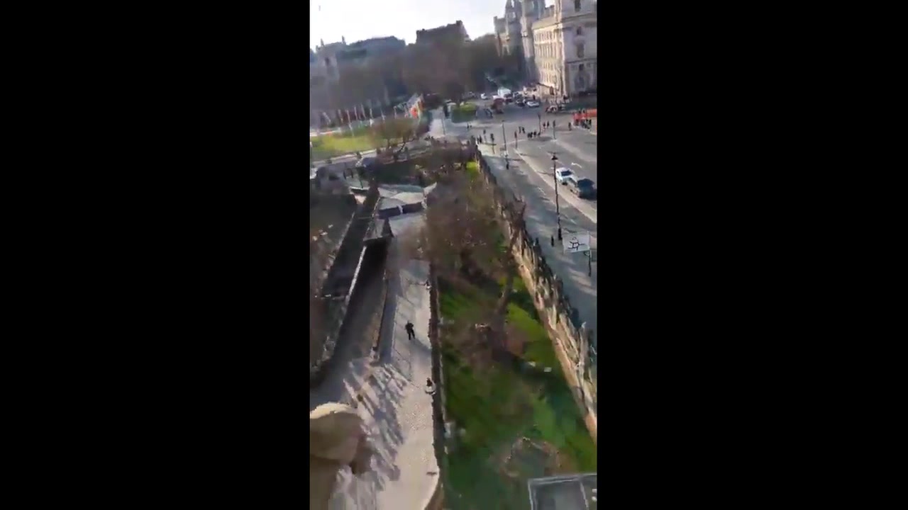 A man carrying a Palestinian flag has climbed Big Ben and has been there for most of the day.