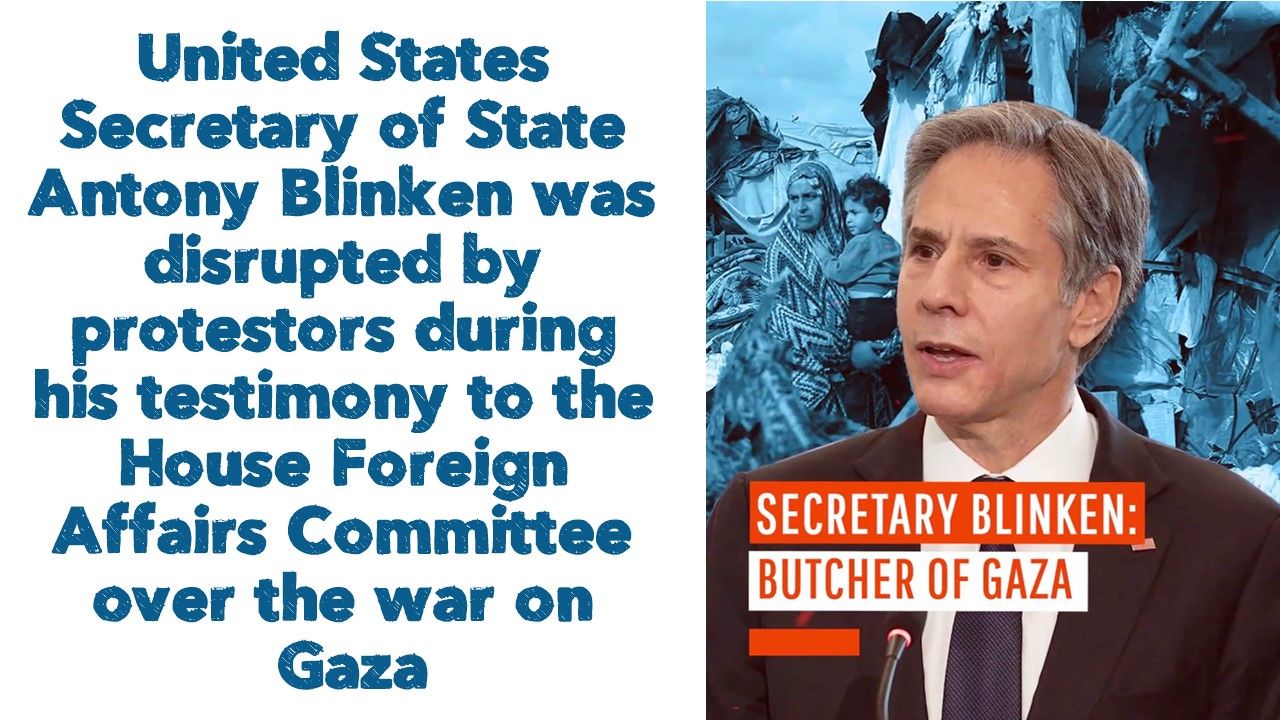 United States Secretary of State Antony Blinken was disrupted by protestors during his testimony to the House Foreign Affairs Committee over the war on Gaza.