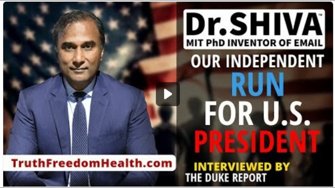 Time for US. Shiva4President.com Get Educated, or Be Enslaved TruthFreedomHealth.com To attend an online OPEN HOUSE with Dr.SHIVA this THURSDAY at 11 AM EST or 8 PM EST. RSVP at: VASHIVA.com/ORIENTATION. Dr.SHIVA Ayyadurai, MIT PhD, Inventor of Email, Scientist & Engineer, Candidate for US President is committed to health, education, and innovation. Dr. SHIVA’s most recent innovation is the Truth Freedom Health® SYSTEM that is an educational, community, and technology platform that is enabling everyday people to become wiser and smarter – to think beyond Left & Right, “Pro-” and “Anti-” – by learning the SCIENCE OF SYSTEMS – to see things as they truly are to know the real problem to innovate the real solution. To learn more about the Truth Freedom Health® System, visit https://TruthFreedomHealth.com and contribute to this global educational movement to become a Warrior-Scholar. Find out more at https://TruthFreedomHealth.com. Be the Light! Dr.SHIVA e: [email protected] w: https://vashiva.com w: https://TruthFreedomHealth.com w: https://Shiva4President.com Twitter: @va_shiva Facebook: https://www.facebook.com/va.shiva.ayy... YouTube: https://www.youtube.com/@drvashiva Gab: https://gab.com/ShivaAyyadurai Rumble: https://rumble.com/c/DrSHIVA Telegram: https://t.me/vashiva Bitchute: https://www.bitchute.com/channel/OBgu... Odysee: https://odysee.com/@drvashiva Gettr: https://gettr.com/user/VASHIVA TikTok: https://www.tiktok.com/@drvashiva