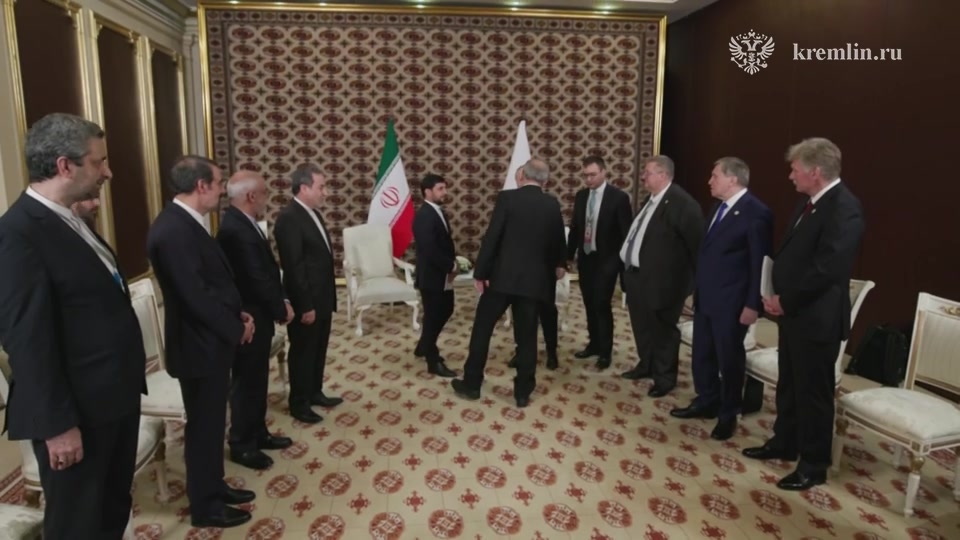 The Kremlin publishes footage of the meeting between Putin and Iranian President Pezeshkian in Ashgabat.