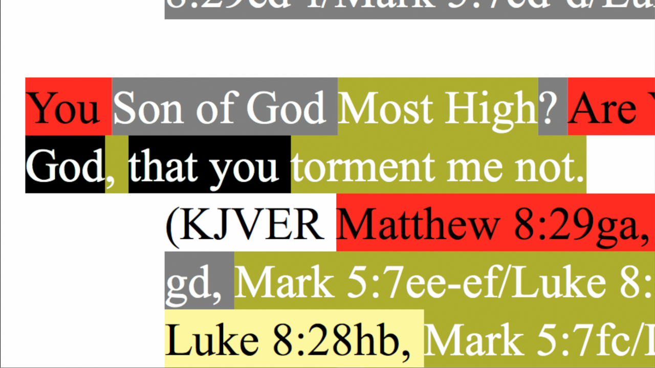 186b. Demons Beg Jesus to Not Torment Them. Matthew 8:29, Mark 5:7, Luke 8:28